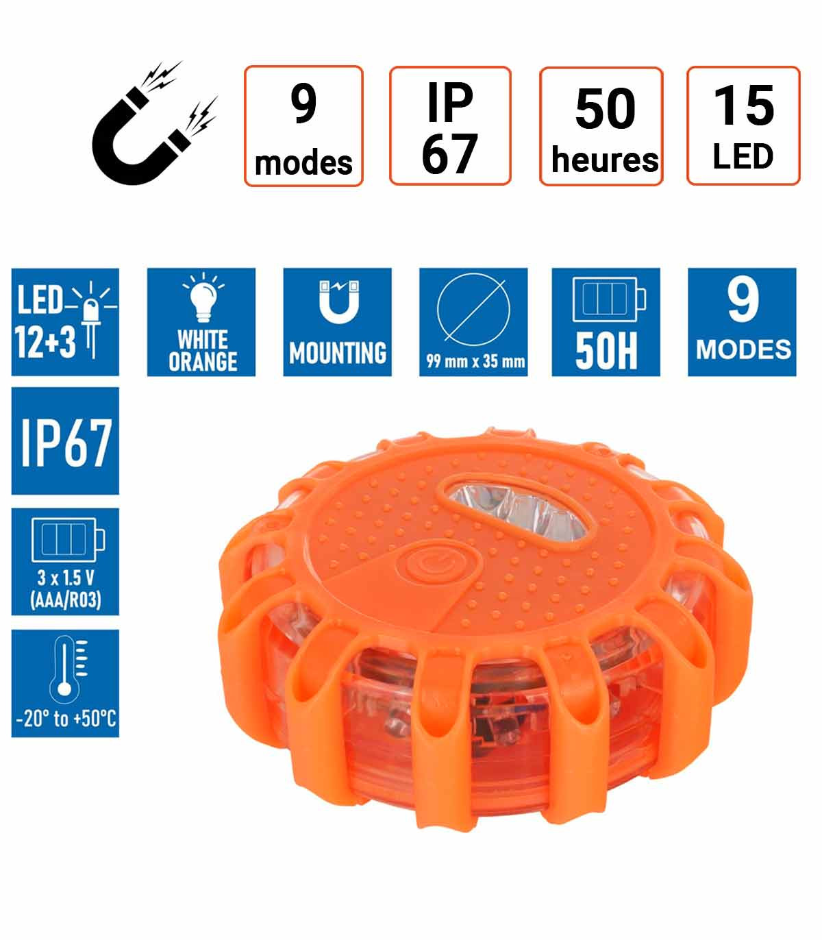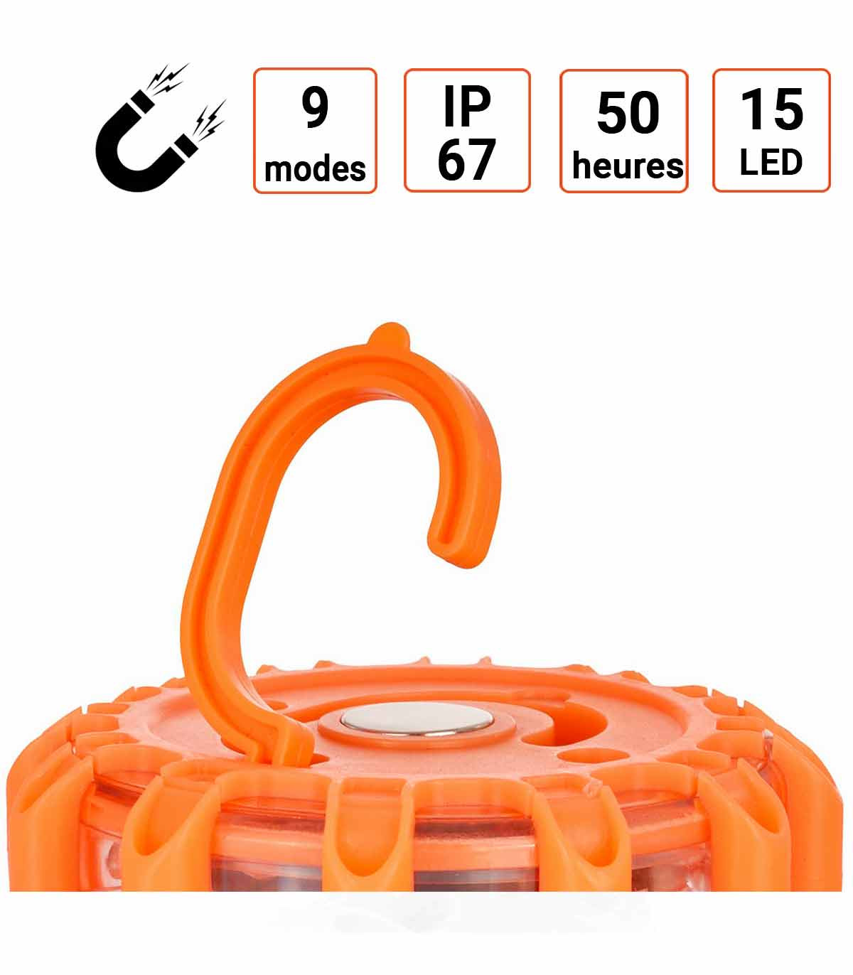 9 modes d'éclairage différents : lumière fixe, clignotante, pulsée et d'autres effets, selon vos besoins.